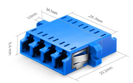 Adapter/Coupler LC/UPC to LC/UPC Quad Single Mode Plastic Fiber Optic with Flange Blue